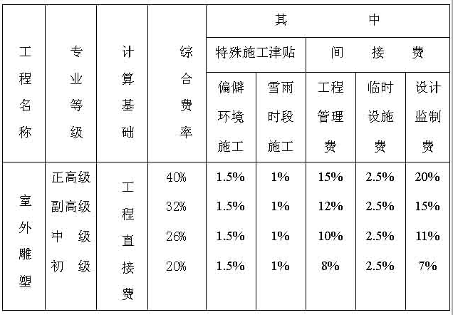 六、雕塑工程间接费取费标准